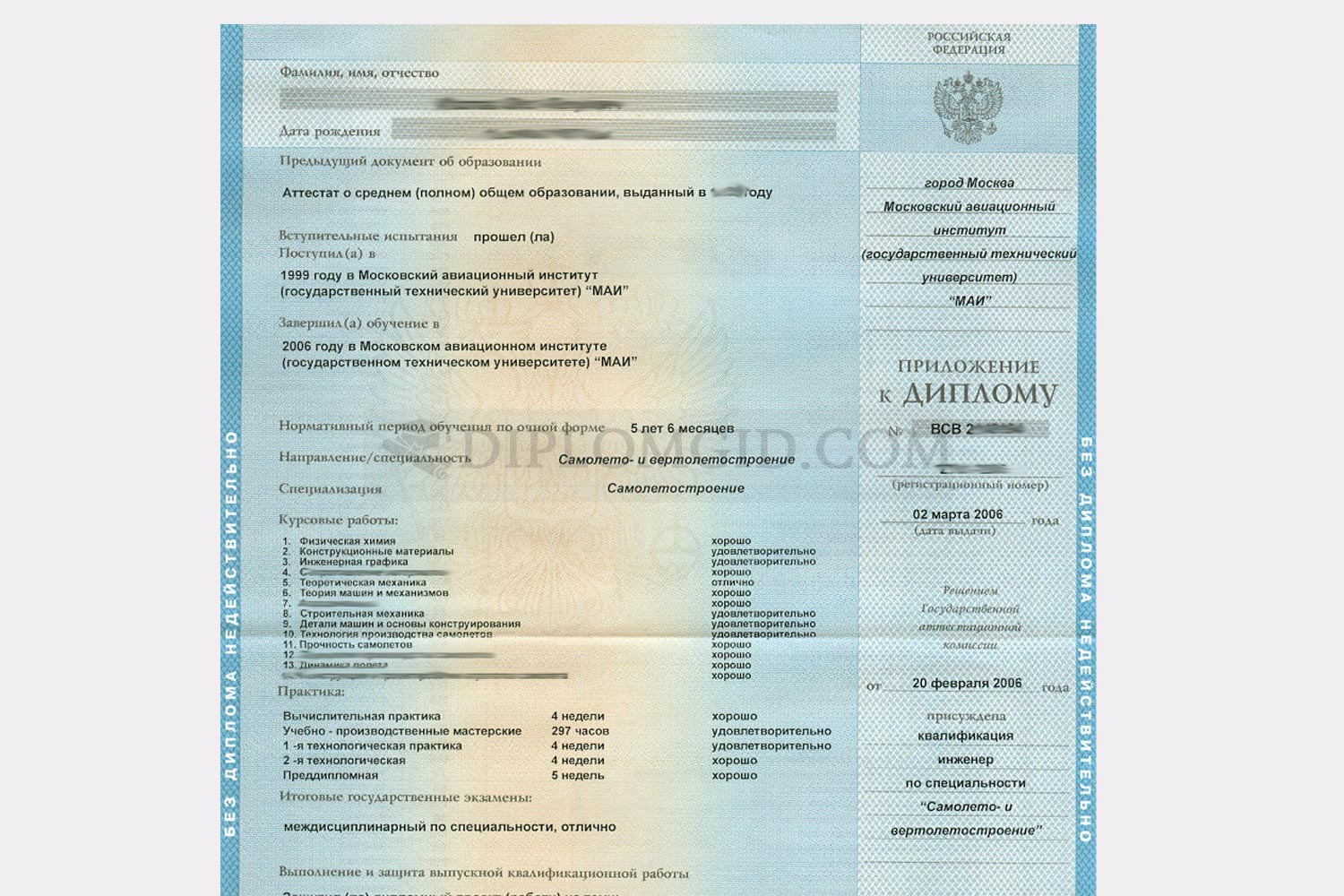 На нашем сайте Вы можете купить диплом 2004-2009 года без обучения, выданный любым ВУЗом Москвы и других городов России. В комплект входит бланк, обложка и приложение, оформленные по всем стандартам.