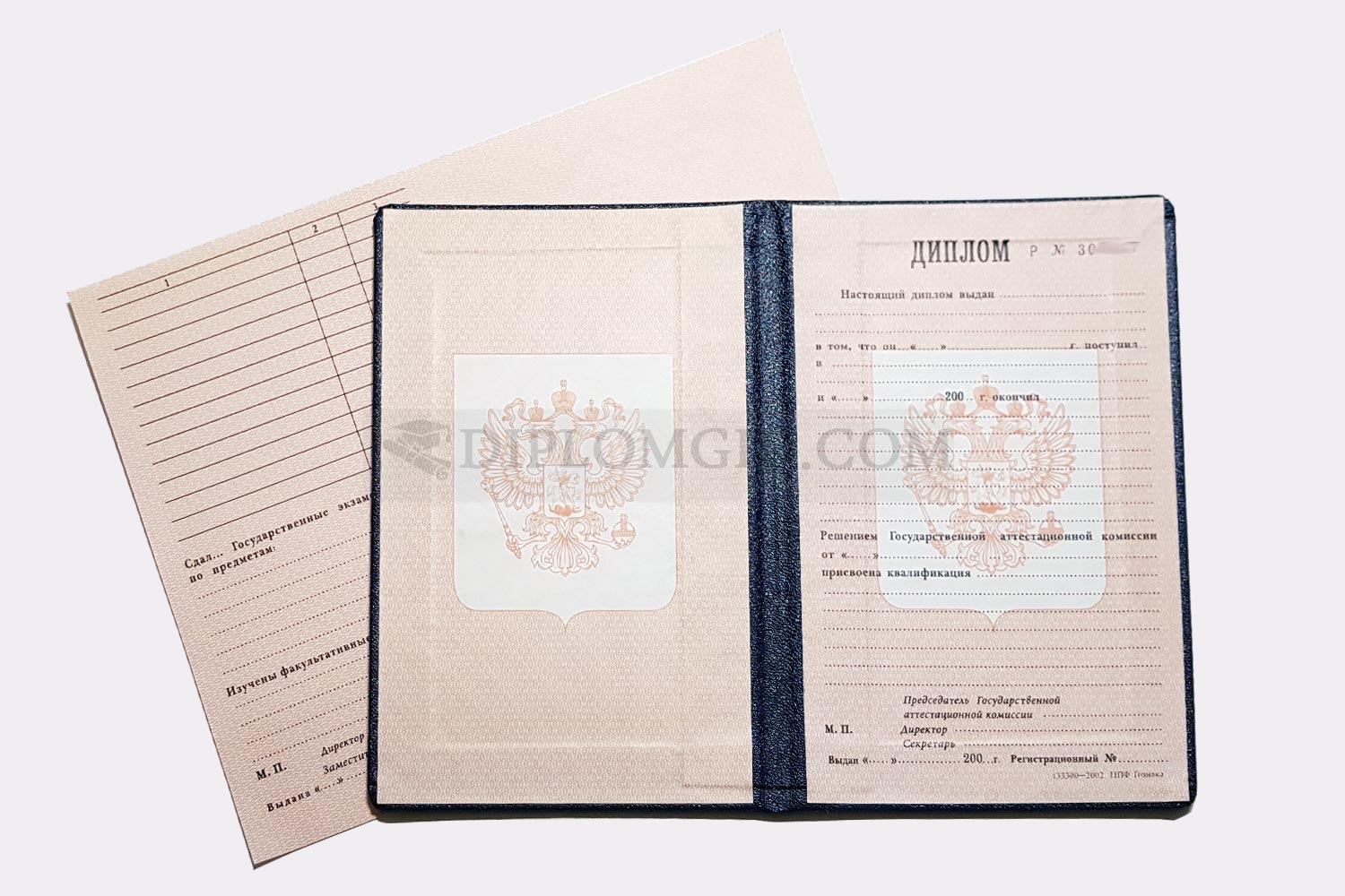 Диплом о высшем образовании 1997-2003 года. Комплект: диплом, приклеенный к обложке, приложение. Качество: Гознак